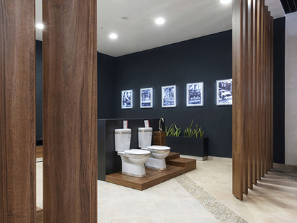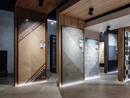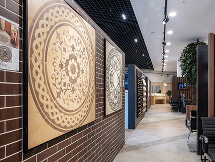 Оригинальный формат представления коллекций стал отличительной чертой нового салона. Уникальная арочная инсталляция для демонстрации коллекций керамогранита и настоящая жилая квартира: в ней вы пройдете по террасе, прихожей и гостиной, посетите кухню, детскую, спальню и ванные комнаты. В этой «квартире» открываются безграничные возможности использования керамической плитки в создании домашнего уюта.